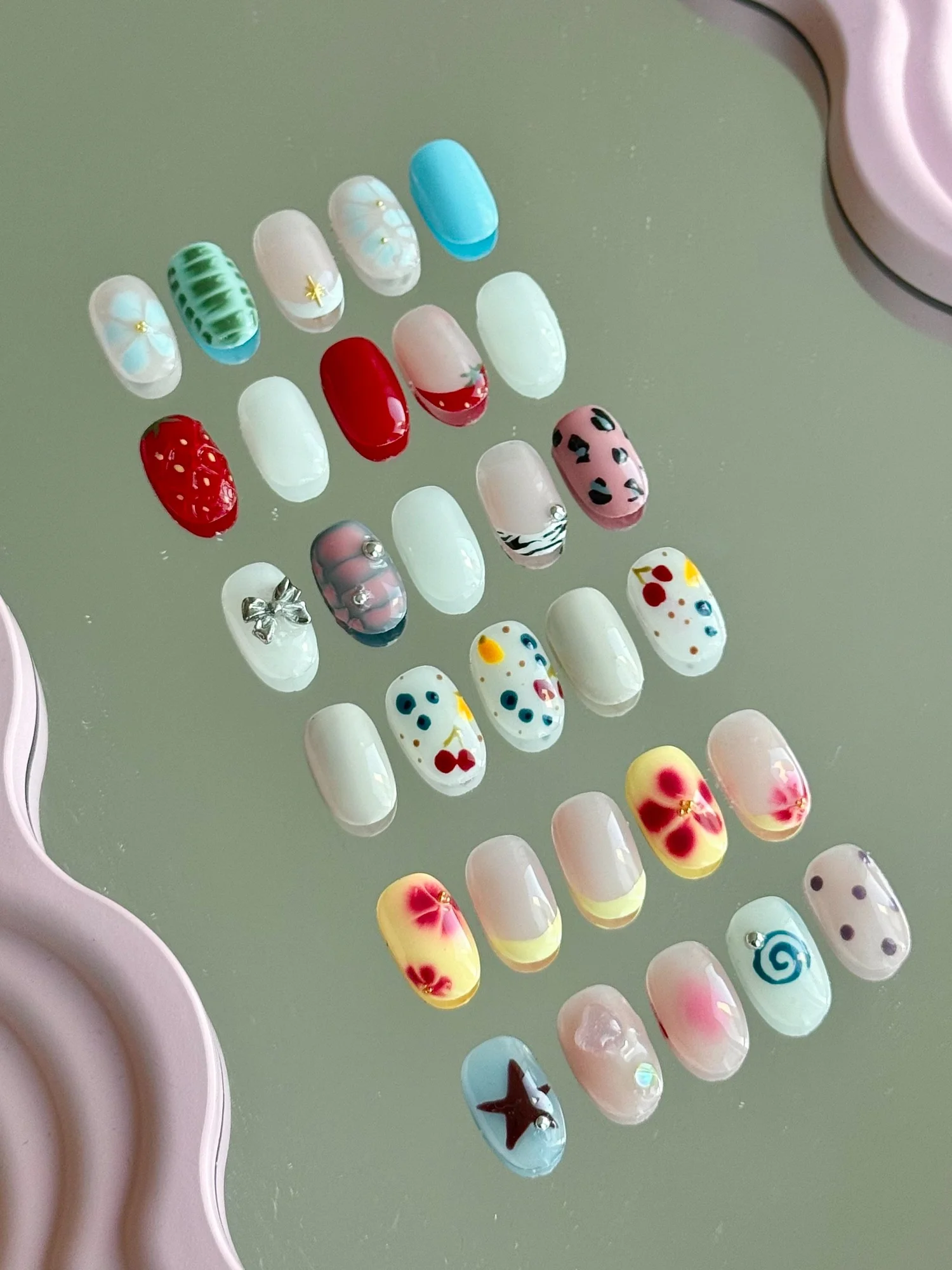 These natural nail designs are set at a discounted price of $90 and are available until the end of the month before the next collection is released. These nail designs may vary slightly depending on the technician but, colors and overall designs will remain the same.